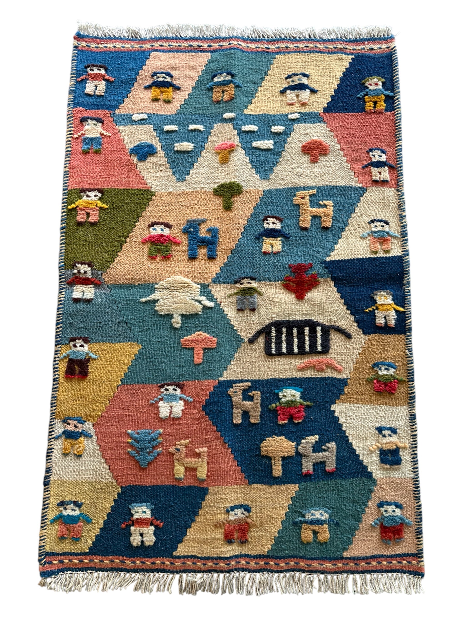 One of our favourite types of rugs in mini form. Persian Gabbeh, the perfect little rug with lots of character. We think this rug would look lovely as a well hanging or on the floor.