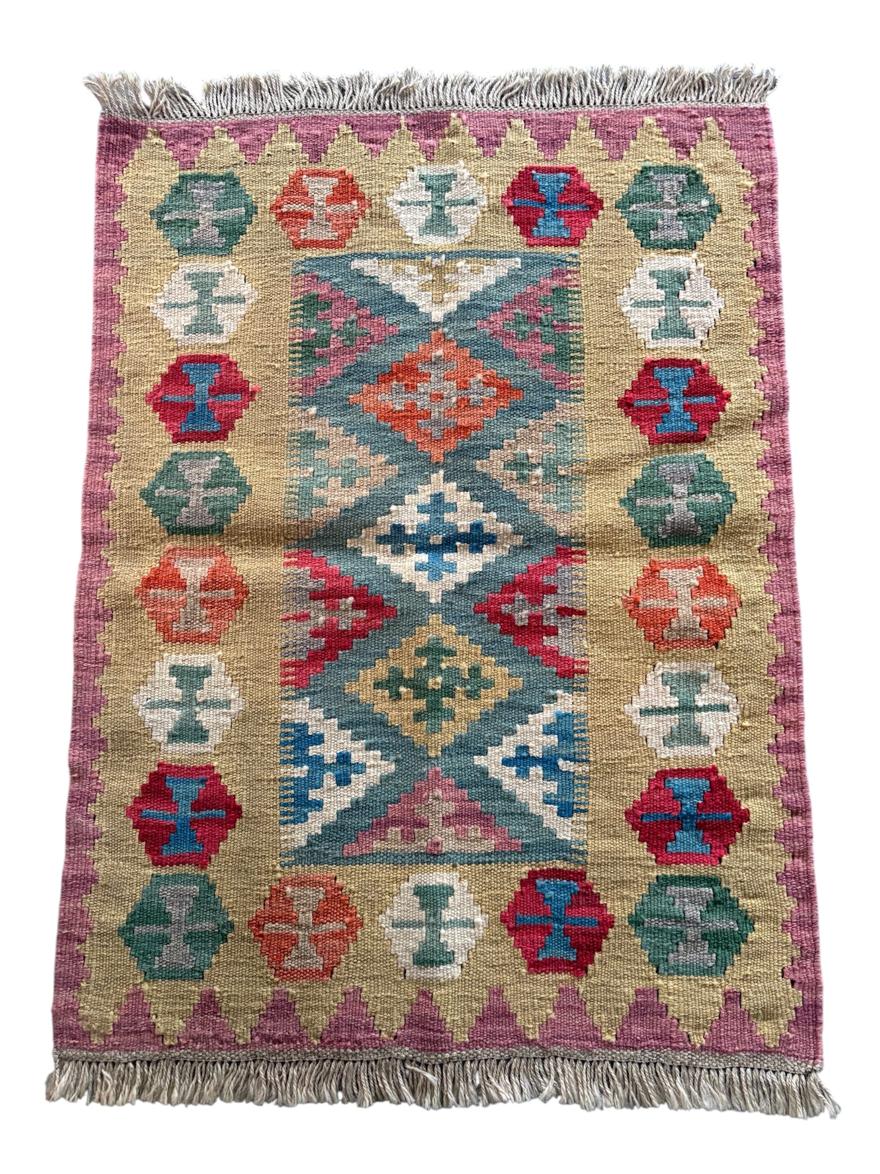 Our mini rug range is the perfect way to add a splash of colour and texture to your home! A wonderful little rug handmade in Persian, using wool and herbal/semi herbal dyes. (Sometimes the tassels are left long, but can be trimmed to the desired length).